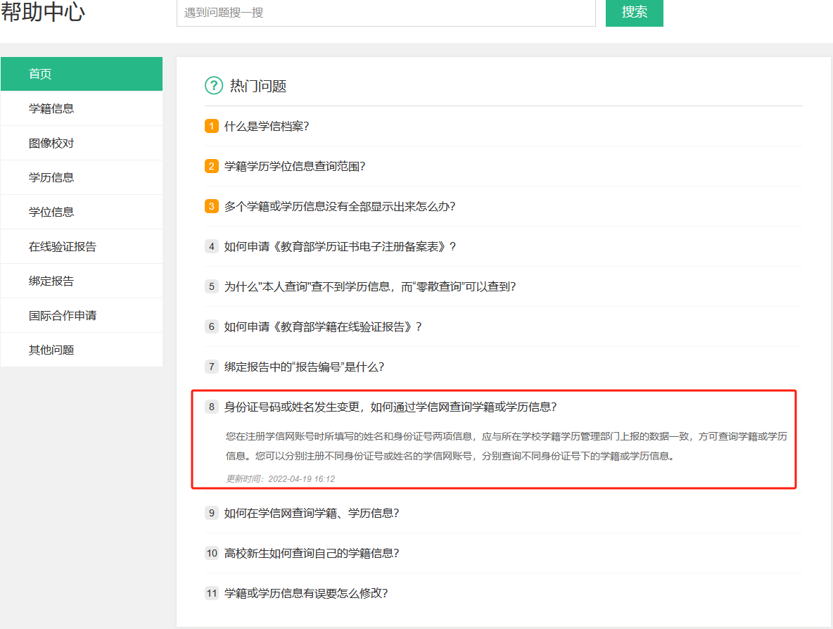 根据《高等学校学生学籍学历电子注册办法》第十九条“学生在校期间修改或变更身份信息的,由学生本人提供合法性证明,学校或省级教育行政部门审核确认后更改,学信网保留更改前的信息。学生要求修改、变更的信息或证明材料涉嫌弄虚作假的不予受理。”之规定,研究生在校期间,确因变更个人身份信息(姓名、身份证号、民族、出生日期等),需变更研究生学籍信息的,可提出变更申请,并提前准备好相关材料(详见后)。