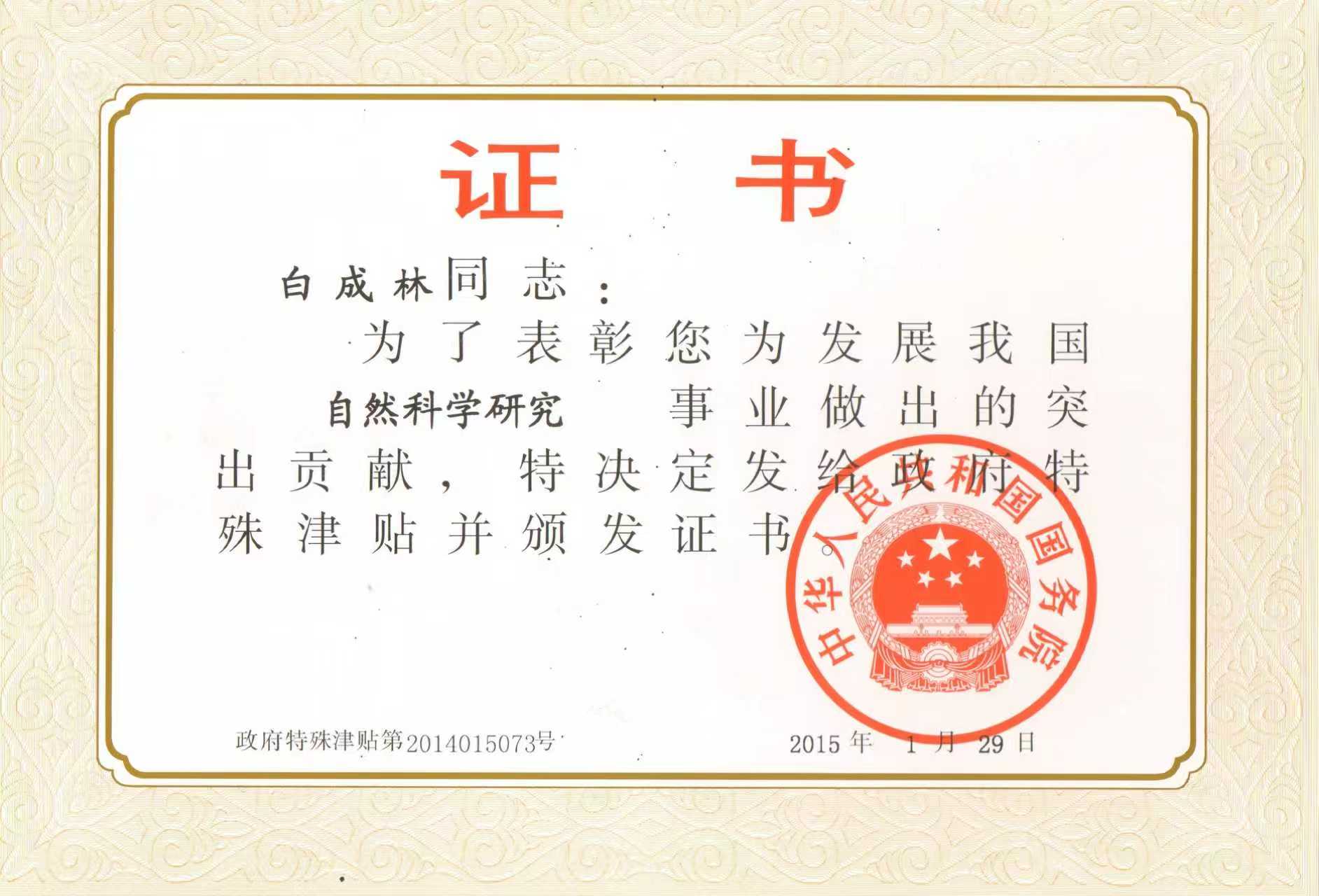 国务院政府特殊津贴(白成林)