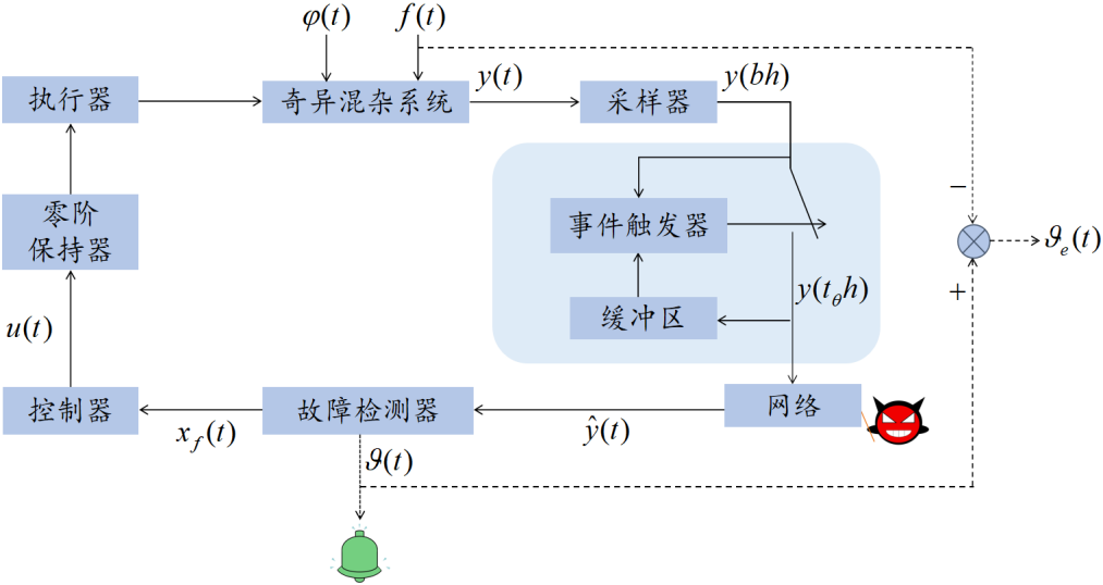 图1 网络攻击下基于输出感知事件触发协议的奇异混杂系统故障检测与鲁棒安全控制