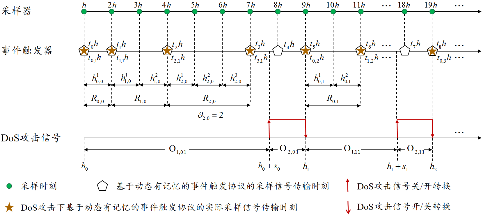 图2 DoS攻击下动态有记忆的事件触发协议示意图