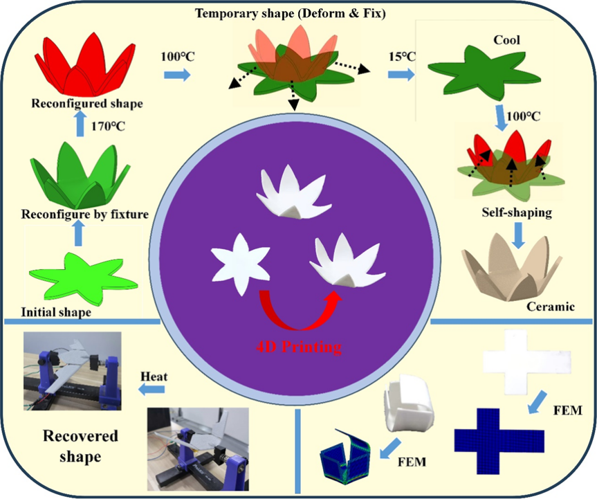 图2.具有形状记忆功能的可编程聚乳酸陶瓷4D打印