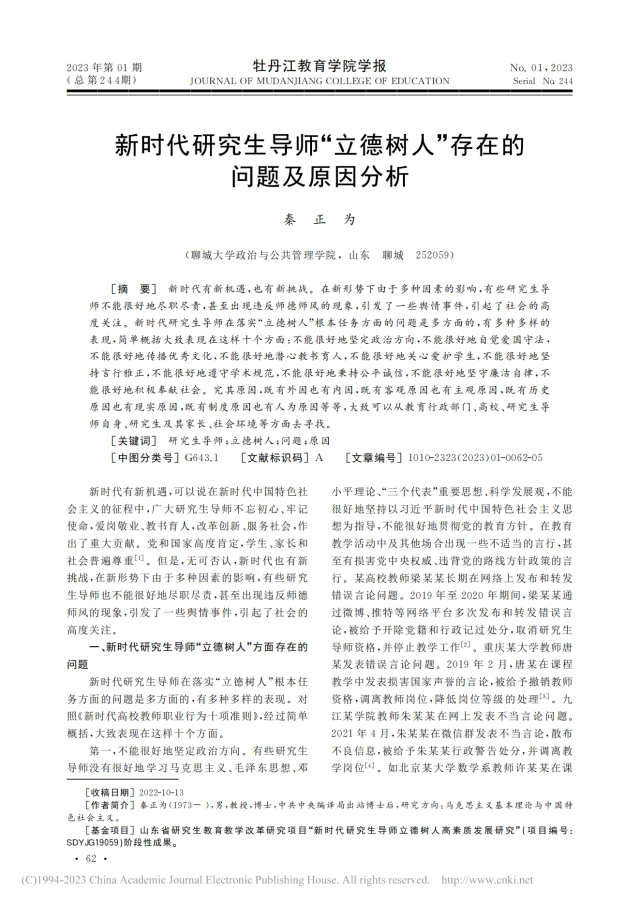 24.新时代研究生导师“立德树人”存在的 问题及原因分析