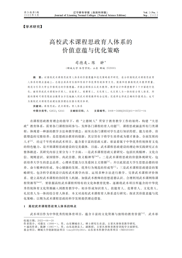 19.高校武术课程思政育人体系的 价值意蕴与优化策略